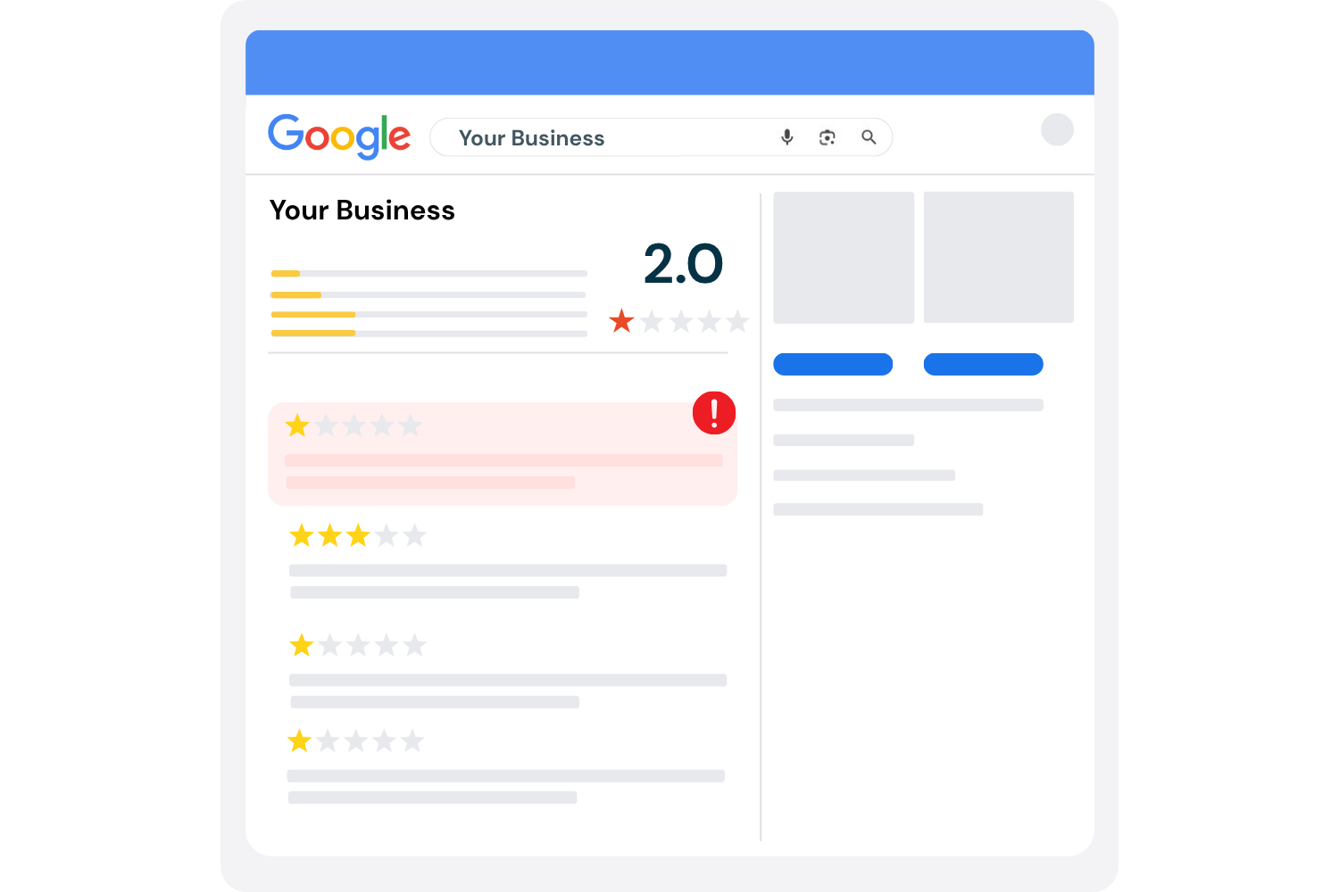 Google your business name and check your Google Business Profile rating. If you see any fake or defamatory Google reviews, they're likely impacting your sales. 85% of customers research businesses before buying, and negative Google reviews are conversion killers.